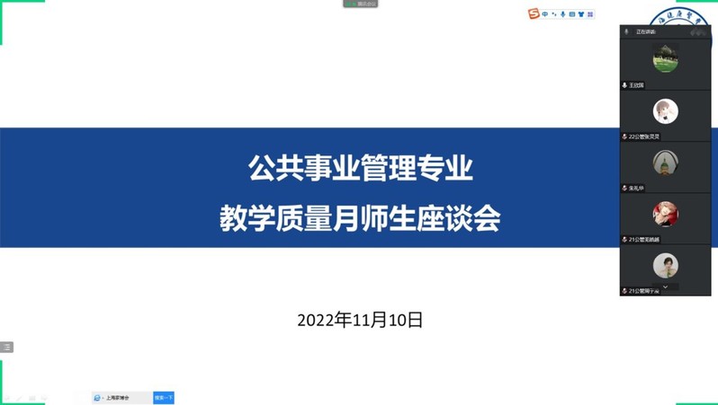 为进一步提升专业教学水平,深入了解近期教学工作,加强日常教学管理,规范教学运行,促进公司内涵式高质量发展。2022年11月10日19:30,英国365集团公司公共事业管理教研室以线上方式召开期中教学质量师生座谈会,公共事业管理教研室全体教师及员工代表参加。