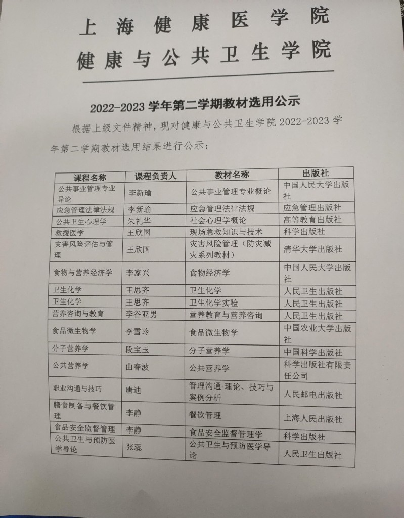 根据上级文件精神,现对2022-2023学年第二学期教材选用结果进行公示: