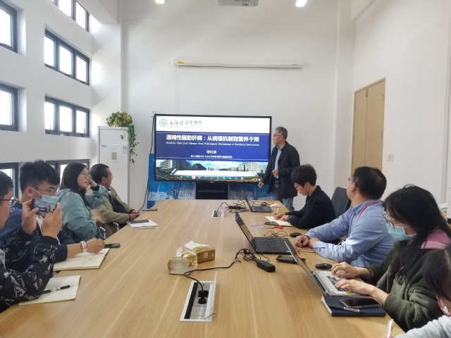 讲座中李松涛教授从酒精对人体的危害开始,理论联系实践,介绍了日常饮酒与酒精性肝病关系的研究进展,并从酒精性肝病的发生机制角度,介绍了其课题组研究过程中发现的营养素及各种油脂对酒精性肝病的防治作用及机制,为酒精性肝病的营养防治策略提供了理论依据。李教授的讲座内容丰富,介绍生动形象,阐述思路清晰,数据严谨,为各位教师及研究生们的学术发展提供了思路,得到了大家一致好评。