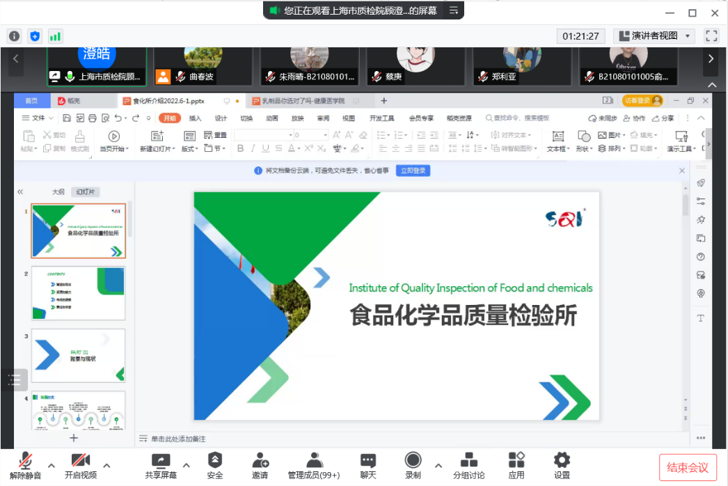 2021年6月21号下午,英国365集团公司邀请上海市质量监督检验技术研究院顾澄皓、朱伟两位专家为食品卫生与营养学专业的全体教师有关食品化学品质量检验研究的讲座。英国365集团公司食品卫生与营养学学21级员工共同参与此次讲座。