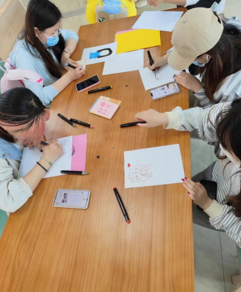 同学们积极创作,发挥自己天马行空的想象力,在卡纸上画出心中的自己,根据自己的性格,兴趣爱好,做出自己对未来的设想。期待能在画中遇见一个更好的自己。