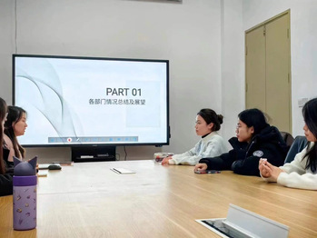 会长杨鑫怡同学、办公室部长应卓君同学、组织部部长吴毓妮同学、信媒部部长徐子越同学就近两个月以来部门工作的情况、存在的问题、面对的挑战等方面总结经验,争取在下一学期的工作中更上一层楼。