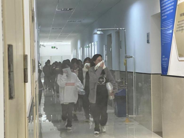 火情之下,保证生命安全是第一要义。师生演练模拟实验室、教室区域突发火情,随着烟幕弹释放、消防警报响起,所有师生按照公司消防应急疏散路线,迅速而有序地从4号楼撤离到“安全地带”。撤离过程中,师生用湿毛巾捂住口鼻,听从现场指挥,在楼梯口不互相推、拉,不争先恐后,始终把确保生命安全放在首位。