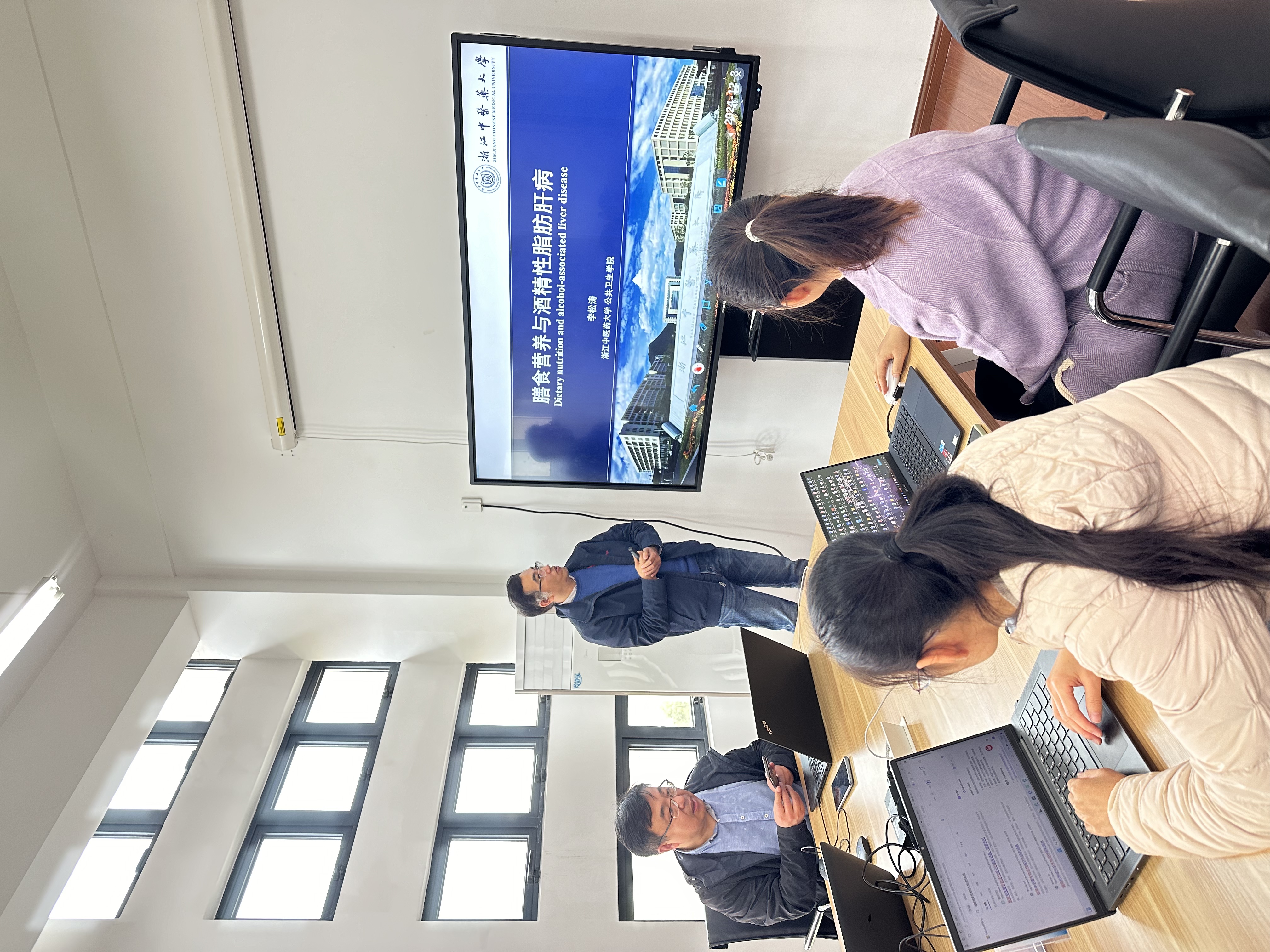 学术报告中,李松涛教授从联合国可持续发展目标里面提到的健康与福祉出发,以饮酒与患酒精性脂肪肝病之间的关系为例,对比了我国与全球的饮酒情况及酒精性脂肪肝病患病情况,介绍了国内外关于饮酒量与患酒精性脂肪肝病的风险关系。重点从实验设计、机制路线等方面详细讲解了自己研究团队的研究内容,初步阐明了饮酒导致酒精性脂肪肝病的潜在靶点,同时也拓展了将来有前景的研究方向。此外,李教授团队基于膳食营养在肝脏疾病中的重要调控作用,进一步探讨了膳食营养对酒精性脂肪肝病的缓解作用,列举了高蛋白低碳水等多个膳食营养因素与酒精性脂肪肝病进展的关系,提出了基于膳食营养对酒精性脂肪肝病的缓解作用。