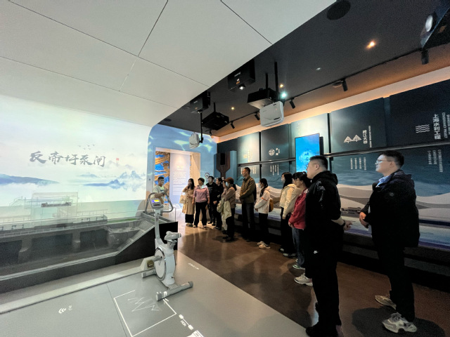 在秋日的午后,教职工们前往爱国主义教育基地长江治水体验馆。该馆以水利工程为核心,通过互动模型与数字技术,生动展示了长江入海口的生态治理历程。在讲解员的引导下,老师们了解到反帝圩泵闸站如何实现水资源分配,并通过骑行固定自行车模拟泵闸启闭操作,直观感受了科技治水的力量,更让老师们深刻体会到“绿水青山就是金山银山”的理念。