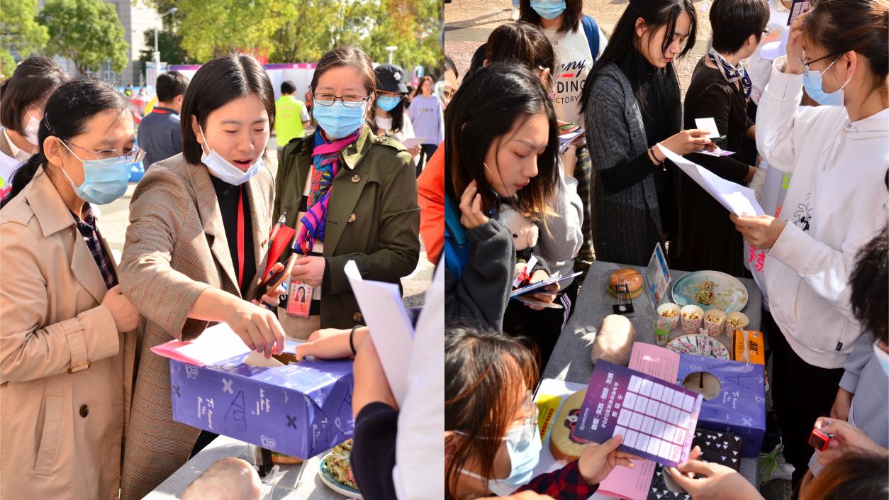 同学们将与食品营养相关的各类问题按照难易程度分为3个等级,现场观众可以根据自己能力挑战不同难度的题目,得到不同的食品。通过答题的形式,既增进活动的趣味性,也进行了一次食品营养学的严肃科普。
