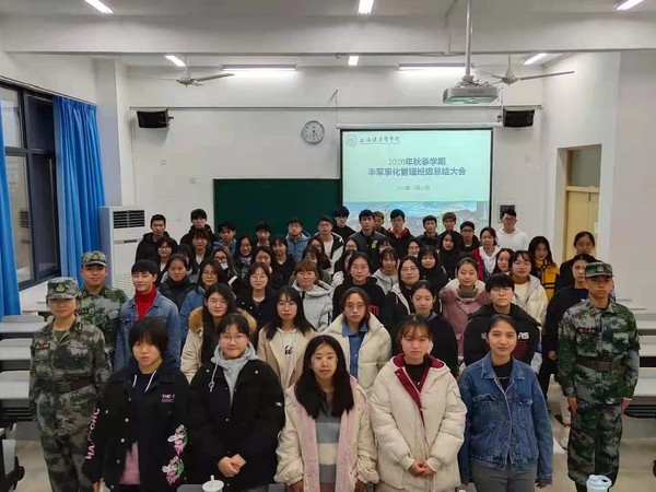 2020年12月29日下午,食品卫生与营养学专业同学们顺利完成2020年秋季学期半军事化管理,对本学期半军事化管理进行了班级总结。