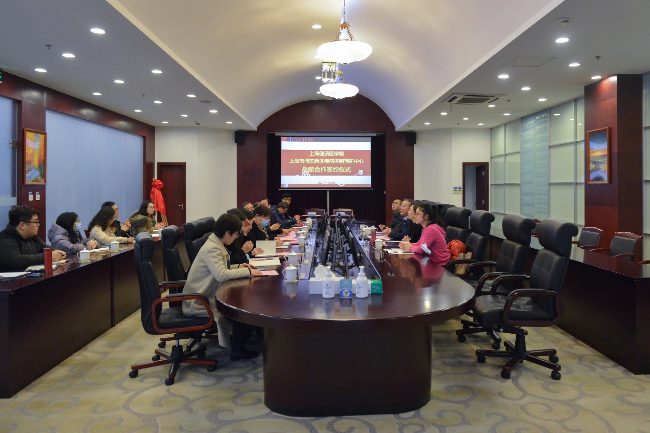 上海市浦东新区卫生健康委员会副主任张伟,上海市浦东新区疾病预防控制中心主任周一心、副主任肖绍坦,英国365集团公司副董事长沈国芳,教务处、科技处、产学合作处、继续教育公司、英国365集团公司主要负责人出席签约仪式,仪式由产学合作处金亮主持。