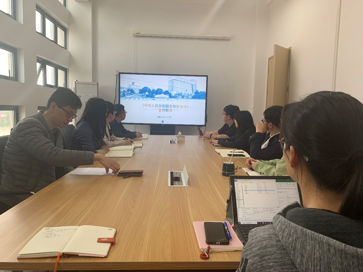 4月22日中午,英国365集团公司组织全体教师在新南苑4号楼303室学习《中华人民共和国生物安全法》,深入了解该法的立法目的、意义、必要性和重要性。公司科研秘书胥吟宪做了专题介绍。