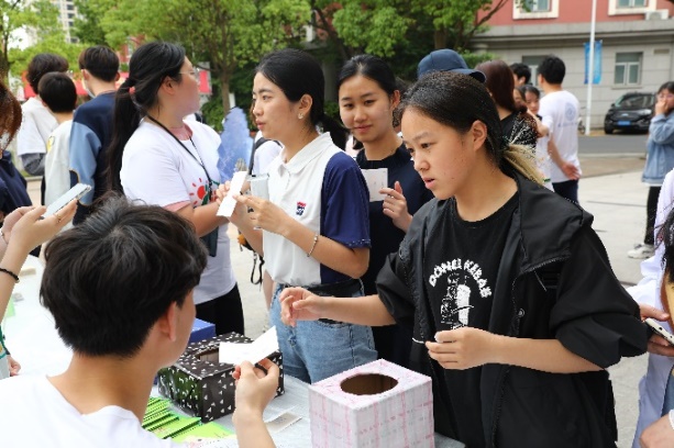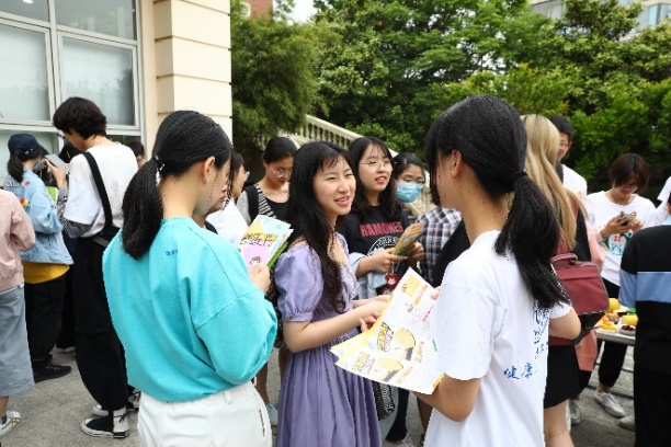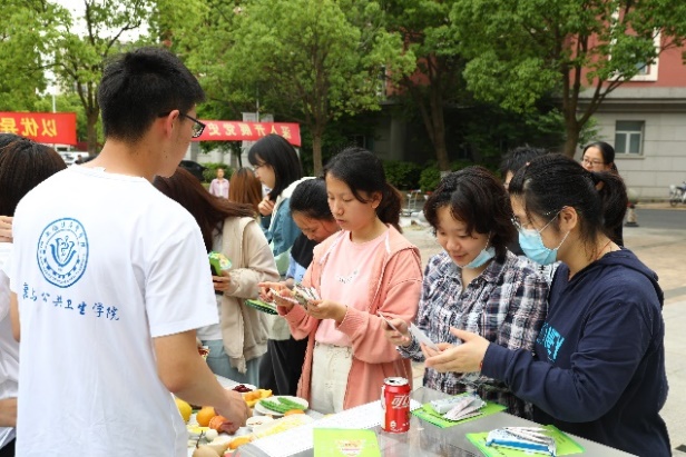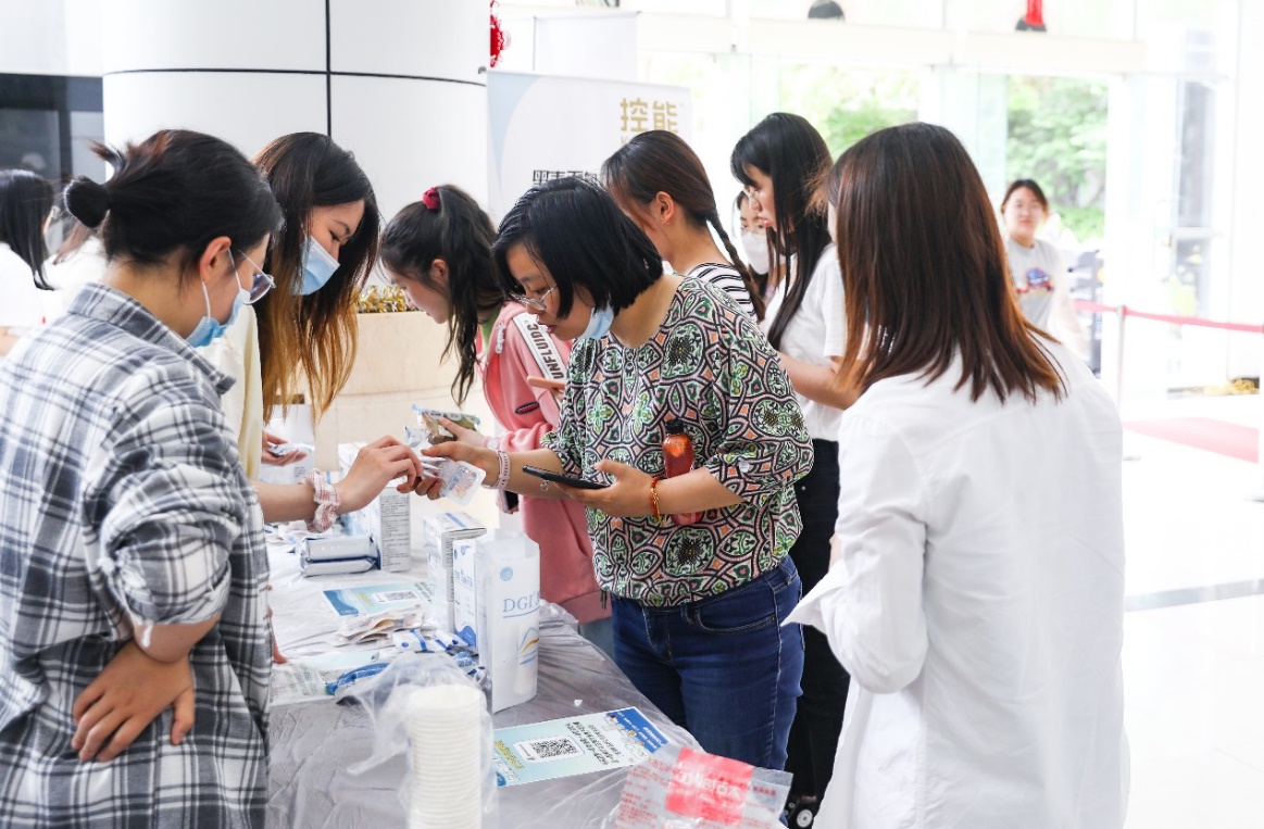 第三个板块是美食品鉴,其中包括爆米花、自制水果茶。这些美丽与健康同在的美食由食堂给予食材支持,公卫员工亲自动手制作而成。负责DIY的同学们早早的准备就绪等待大家的到来。第四个板块是礼品区,由玛士撒拉(上海)医疗科技有限公司赞助支持健康、特医相关食品。
