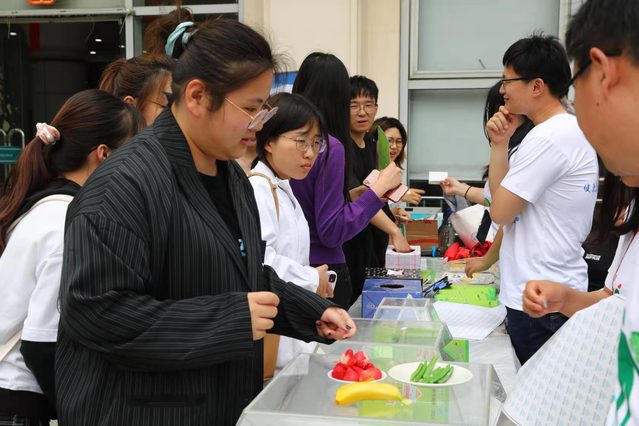 本次营养周主题活动开幕式分为四个板块。第一个板块是向全校师生推广《中国居民膳食指南》和《新兴食尚 提倡分餐制》的宣传手册,并介绍公司食堂营养专窗。通过员工用专业知识计算出营养午餐的能量、蛋白质和碳水,设计出符合一个成年人一顿午餐所需的能量和营养物质。第二个板块是营养小知识问答,包括知识竞答、宝塔还原、营养红绿灯等,宣传正确的营养知识和餐饮配比。通过理论知识的铺垫,进入知识实践环节。员工们踊跃答题,将活动推向高潮。