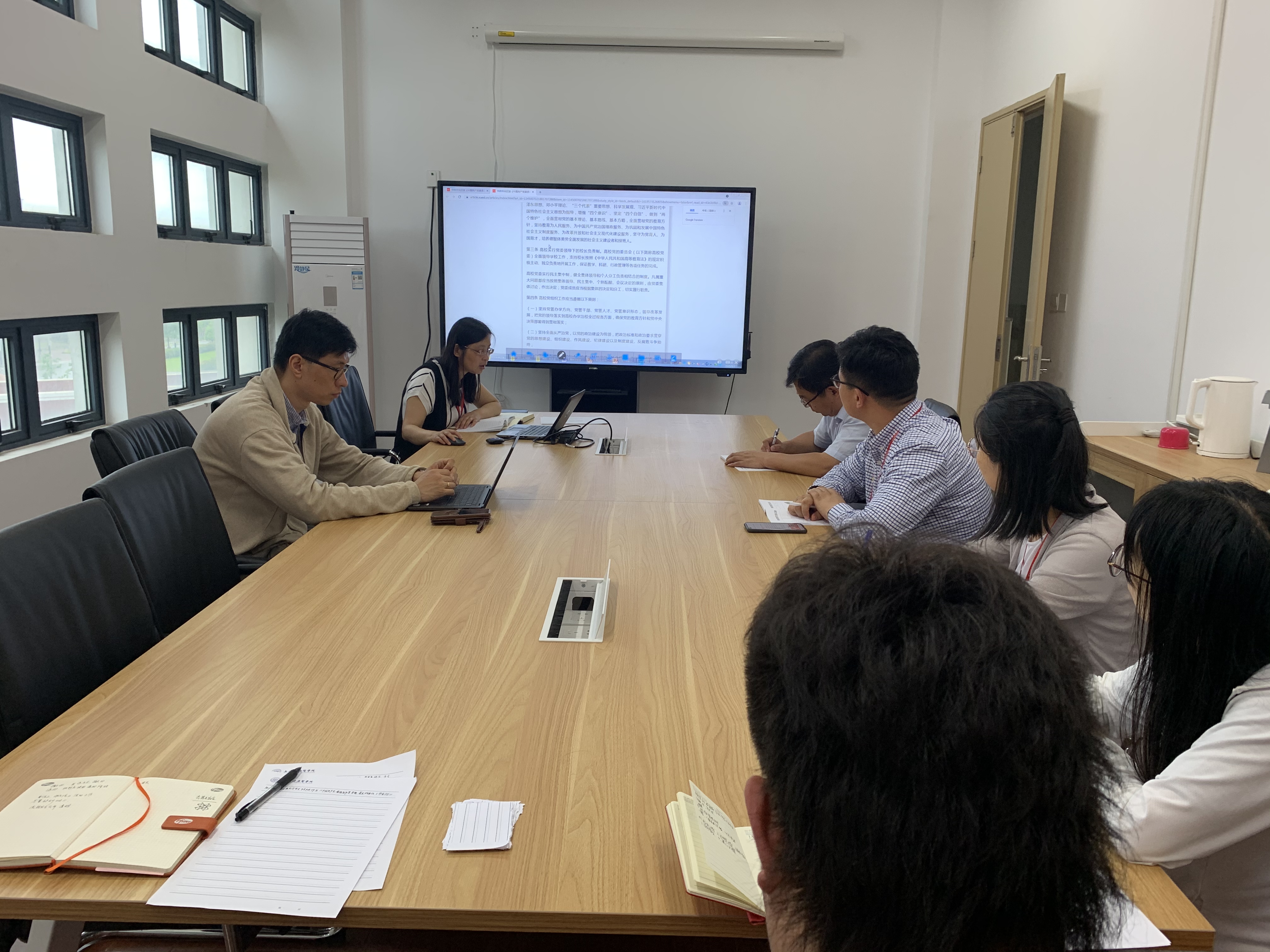 2021年6月2日下午,英国365集团公司全体教师在新南苑会议室进行了《中国共产党普通高等公司基层组织工作条例》的集中学习,陈泓书记主持会议并领学。