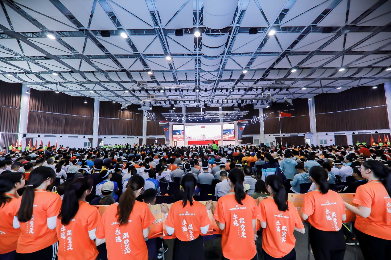 在开幕式结束之后,志愿者带领全市教育系统93个单位的教师运动员按照指定路线到达各红色打卡点,体验长征精神,汲取前进力量,完成健步走的任务。在午间骄阳下,志愿者们与运动员一起走完6.6公里全程。对于平时锻炼不多的女同学来说,路程遥远,但在与老师们的温馨相处中也顺利随队抵达终点。