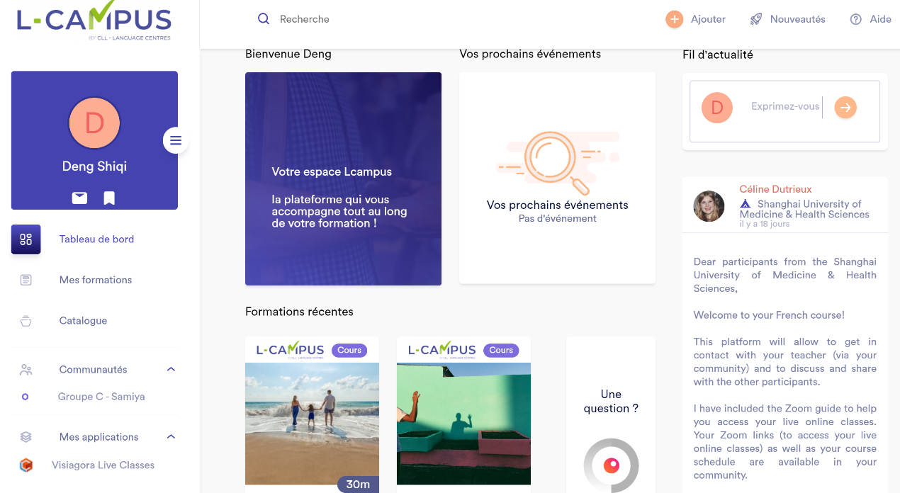816日,为期两周的法语远程教学在欢笑声中画上了圆满的句号,尽管远程法语教学需要克服网络卡顿等问题,但是老师们的耐心教学、同学们的积极主动投入课堂让本次法语远程教学别样的精彩、有意义。参培同学纷纷表示:这次法语网络游学将成为自己人生中难忘的一段时光。感谢公司提供了这么好的学习机会,感谢鲁汶大学和公司的老师的辛勤付出,相信借助法语一定会让自己未来的人生道路更加宽广。