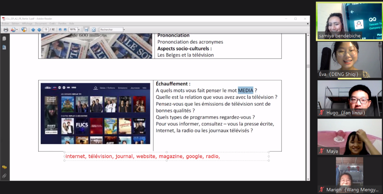 同学参加了本次法语远程教学,鲁汶大学语言中心的法语老师为同学们带来了一堂又一堂精彩纷呈的法语课。